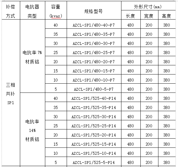AZC系列智能電容器選型: