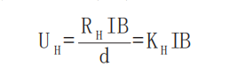 式中:RH是霍爾系數(shù)(是由材料性質(zhì)決定的一個(gè)常數(shù)),對(duì)于金屬導(dǎo)體而言,RH=1/nq(n為載流子濃度或自由電子濃度,q為電子電量。),I為通過器件的電流,B為垂直于I的磁感應(yīng)強(qiáng)度,d為導(dǎo)體的厚度,KH=RH/d稱為霍爾元件的靈敏度,它是表征單位磁感應(yīng)強(qiáng)度和單位電流時(shí)的霍爾電壓輸出大小的一個(gè)重要參數(shù),一般希望它越大越好。若保證式(1)中I不變,那么,在一定條件下,就可通過測(cè)量霍爾電壓UH來推算出磁感應(yīng)強(qiáng)度B的大小,并由此建立了磁場(chǎng)與電壓信號(hào)的聯(lián)系。根據(jù)這一關(guān)系,人們研制出了霍爾器件。