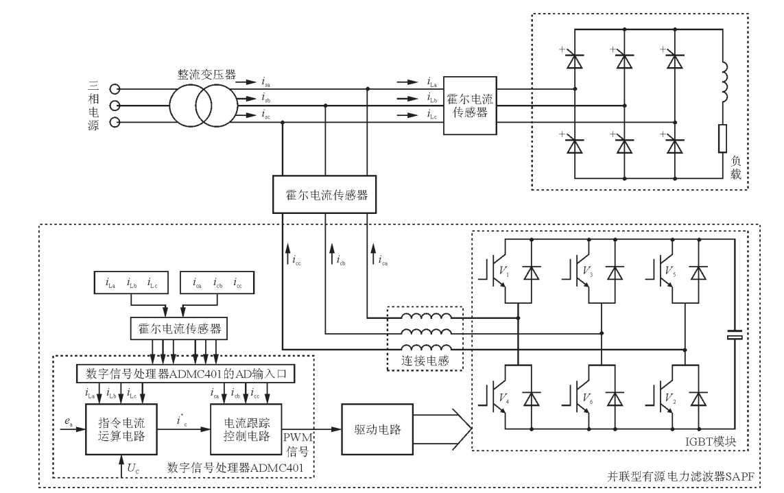 近年來,諧波抑制,提高電能質(zhì)量已成為電力電子技術(shù)、電氣自動(dòng)化技術(shù)及電力系統(tǒng)研究領(lǐng)域的一個(gè)重大課題。而APF由于其自身的很多優(yōu)點(diǎn),已經(jīng)成為目前諧波抑制的一個(gè)發(fā)展趨勢(shì)。由于目前電流型諧波源在電網(wǎng)中的比例很大,實(shí)際應(yīng)用的裝置多為并聯(lián)型有源電力濾波器(SAPF)。