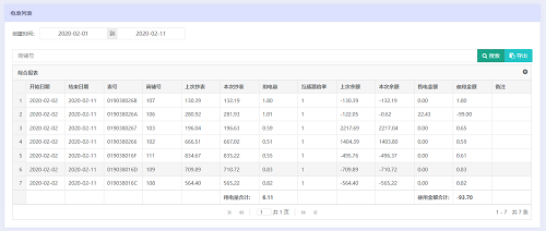 能耗分析:用戶和管理員都可查詢預(yù)付費(fèi)表或管控表每天的用能狀況;可提供能耗分析+財(cái)務(wù)軌跡一體式綜合管理報(bào)表,包含用戶表的能耗、財(cái)務(wù)數(shù)據(jù)、能耗和財(cái)務(wù)的期初期末值等數(shù)據(jù)。