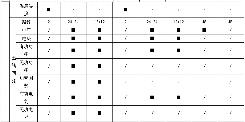 遙測:電壓、電流、功率、電能、電纜溫度、漏電流、機柜溫度、機柜濕度、開關(guān)狀態(tài)、電流/功率;