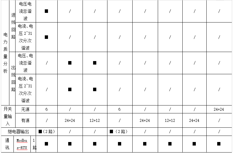 遙測:三相電壓、電流、有功功率、無功功率、視在功率、功率因數(shù)、有功電能、無功電能、電纜溫度,系統(tǒng)頻率、零序電流、零地電壓、漏電流、機柜溫度、機柜濕度、開關(guān)狀態(tài)、電壓/電流諧波含量、電流/功率;