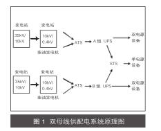 鑒于數(shù)據(jù)中心設(shè)備連續(xù)不停電運行的重要性,各大設(shè)備廠商所生產(chǎn)的小型機、服務(wù)器等設(shè)備越來越多的是雙電源運行設(shè)備,對于這些雙電源設(shè)備,為了保證其運行的可靠性,建議應采用雙母線供電,即兩路供電電源完全獨立且互為備份。