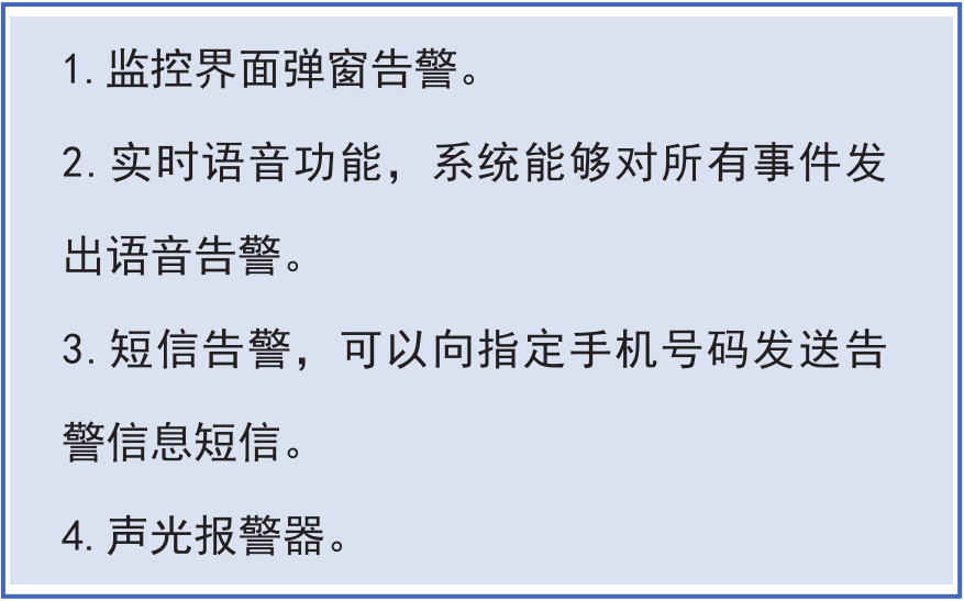 安科瑞智能配電室綜合監(jiān)控系統(tǒng)具有實(shí)時(shí)告警功能,系統(tǒng)能夠?qū)ε潆娛覝囟?、濕度、有害氣體、設(shè)備故障或通信故障等事件發(fā)出告警。告警方式如右圖所示: