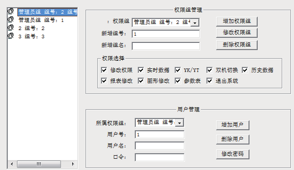 為保障系統(tǒng)安全穩(wěn)定運(yùn)行,設(shè)置了用戶權(quán)限管理功能。通過用戶權(quán)限管理能夠防止未經(jīng)授權(quán)的操作(如遙控的操作,數(shù)據(jù)庫修改等)??梢远x不同級別用戶的登錄名、密碼及操作權(quán)限,為系統(tǒng)運(yùn)行、維護(hù)、管理提供可靠的安全保障。