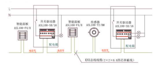 Acrel-BUS智能照明控制系統(tǒng)采用標(biāo)準(zhǔn)的2*2*0.8EIB BUS總線(即KNX總線)作為總線線纜,將所有的智能照明控制模塊連接到一起并組成一套完整的控制系統(tǒng),既可實(shí)現(xiàn)照明燈具的遠(yuǎn)程集中控制,又可實(shí)現(xiàn)就近控制功能。該系統(tǒng)理論可連接控制模塊數(shù)量達(dá)580000多個(gè)。