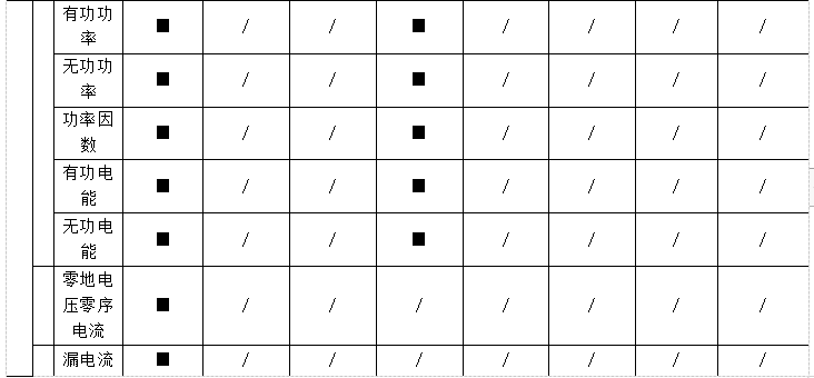 遙測(cè):三相電壓、電流、有功功率、無(wú)功功率、視在功率、功率因數(shù)、有功電能、無(wú)功電能、電纜溫度,系統(tǒng)頻率、零序電流、零地電壓、漏電流、機(jī)柜溫度、機(jī)柜濕度、開(kāi)關(guān)狀態(tài)、電壓/電流諧波含量、電流/功率;