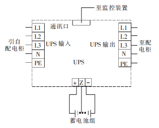 數(shù)據(jù)中心IDS 2000 供配電系統(tǒng)的供電電壓為 380 V 三相電,主要為所有弱電機(jī)柜內(nèi)的設(shè)備、應(yīng)急照明、區(qū)域中央控制指揮中心智能調(diào)度臺和其他智能化設(shè)施供電。在數(shù)據(jù)中心的列頭柜配置一體化配電集成柜,為空調(diào)、監(jiān)控、UPS 和網(wǎng)絡(luò)設(shè)備供電。在行間中部配置 UPS 不間斷電源柜,當(dāng)兩路輸入電源故障斷電時,機(jī)柜自動切換成 UPS 供電,保障設(shè)備不間斷持續(xù)工作。供配電系統(tǒng)接口圖如圖 2 所示。