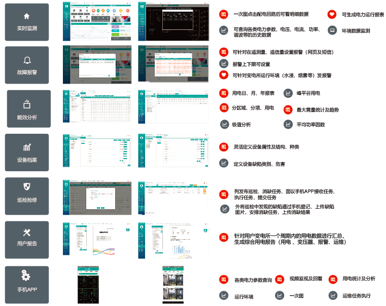 AcrelCloud-1000電力運(yùn)維云平臺(tái)采用多功能電力儀表、無線通信、邊緣計(jì)算網(wǎng)關(guān)及大數(shù)據(jù)分析技術(shù),通過智能網(wǎng)關(guān)采集現(xiàn)場(chǎng)數(shù)據(jù)并存儲(chǔ)在本地,再定時(shí)向云平臺(tái)推送數(shù)據(jù)。平臺(tái)可同時(shí)接入數(shù)以千計(jì)的用戶變電站數(shù)據(jù)。平臺(tái)采集的數(shù)據(jù)包括變電所電氣參數(shù)和環(huán)境數(shù)據(jù),包括電流電壓功率、開關(guān)狀態(tài)、變壓器溫度、環(huán)境溫濕度、浸水、煙霧、視頻、門禁等信息,有異常發(fā)生10S內(nèi)通過短信和APP發(fā)出告警信號(hào)。平臺(tái)通過手機(jī)APP下發(fā)運(yùn)維任務(wù)到指定人員手機(jī)上,并通過GPS跟蹤運(yùn)維執(zhí)行過程進(jìn)行閉環(huán),提高運(yùn)維效率,即時(shí)發(fā)現(xiàn)運(yùn)行缺陷并做消缺處理。
