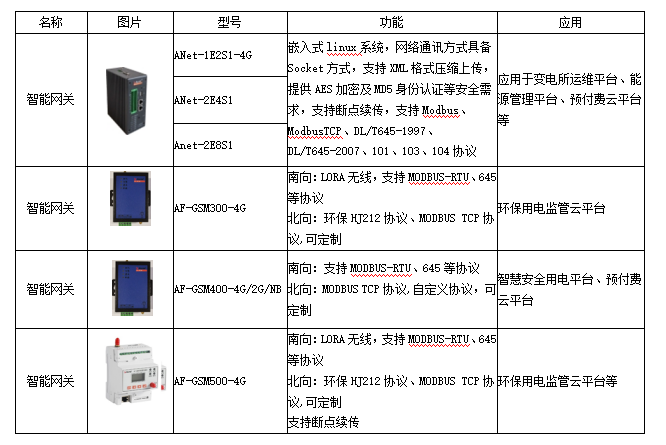 安科瑞針對(duì)物聯(lián)網(wǎng)應(yīng)用開發(fā)了多款智能網(wǎng)關(guān),采用嵌入式系統(tǒng)和邊緣計(jì)算技術(shù),現(xiàn)場(chǎng)采集和存儲(chǔ)終端設(shè)備數(shù)據(jù),并根據(jù)云平臺(tái)的需要,采用不同的協(xié)議和云平臺(tái)對(duì)接。所有數(shù)據(jù)采集、計(jì)算、異常報(bào)警觸發(fā)邏輯均在網(wǎng)關(guān)就地設(shè)置,網(wǎng)絡(luò)故障時(shí)數(shù)據(jù)存儲(chǔ)在本地,網(wǎng)絡(luò)恢復(fù)后補(bǔ)傳數(shù)據(jù),斷點(diǎn)續(xù)傳,提高數(shù)據(jù)可靠性。